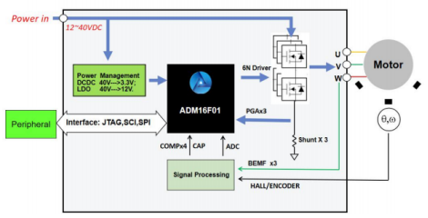 ADP16x器件提供增強型DSP架構設計,以低成本實現(xiàn)低功耗和高性能處理能力。為數字電機和運動控制應用而優(yōu)化的幾種高級外設已經被集成,以提供一個真正的單芯片DSP控制器。與現(xiàn)有的DSP控制器設備代碼兼容時,ADP16x提供更高的處理性能和更高水平的外設集成。