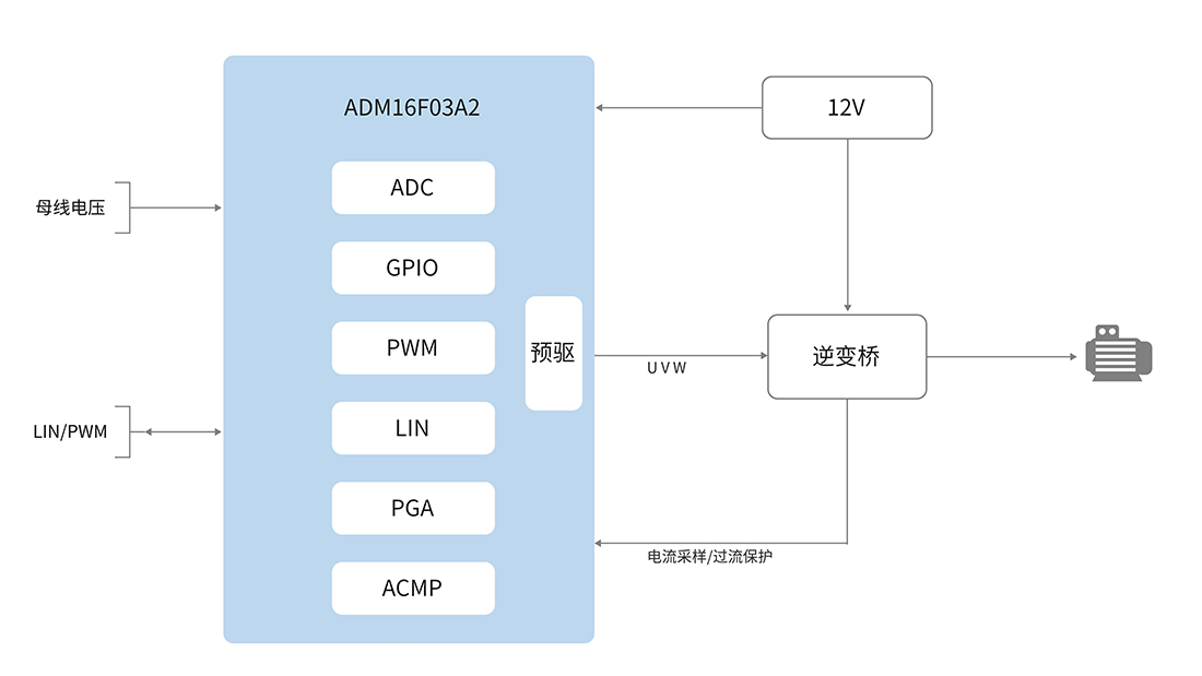 該方案采用單電阻FOC算法,電路簡單,成本低;通過自研無感FOC算法,功率閉環(huán)、速度閉環(huán),具備電機控制平穩(wěn),運行噪音小、強帶載啟動能力等優(yōu)勢